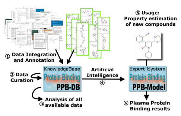 A validation of the method resulted in a high quality of prediction: Based on a large validation dataset a low mean absolute error and a high correlation between experimental and predicted PPB values was observed (prediction of protein binding in human plasma). An outstanding quality of prediction was achieved: Compared to conventional methods which forecast plasma protein binding by compound structure the error of prediction was reduced by half. The project results were presented in January 2020 at the BMBF-Statusseminar in Berlin.