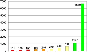 Below is an example of the prediction result from one of these models. We have calculated the prediction ability with independent ("new") compounds. The first test data set contained 10.000 molecules such as proven and marketed drugs or compounds with known biological activity. The second test data set contained 20.000 non-drugs.