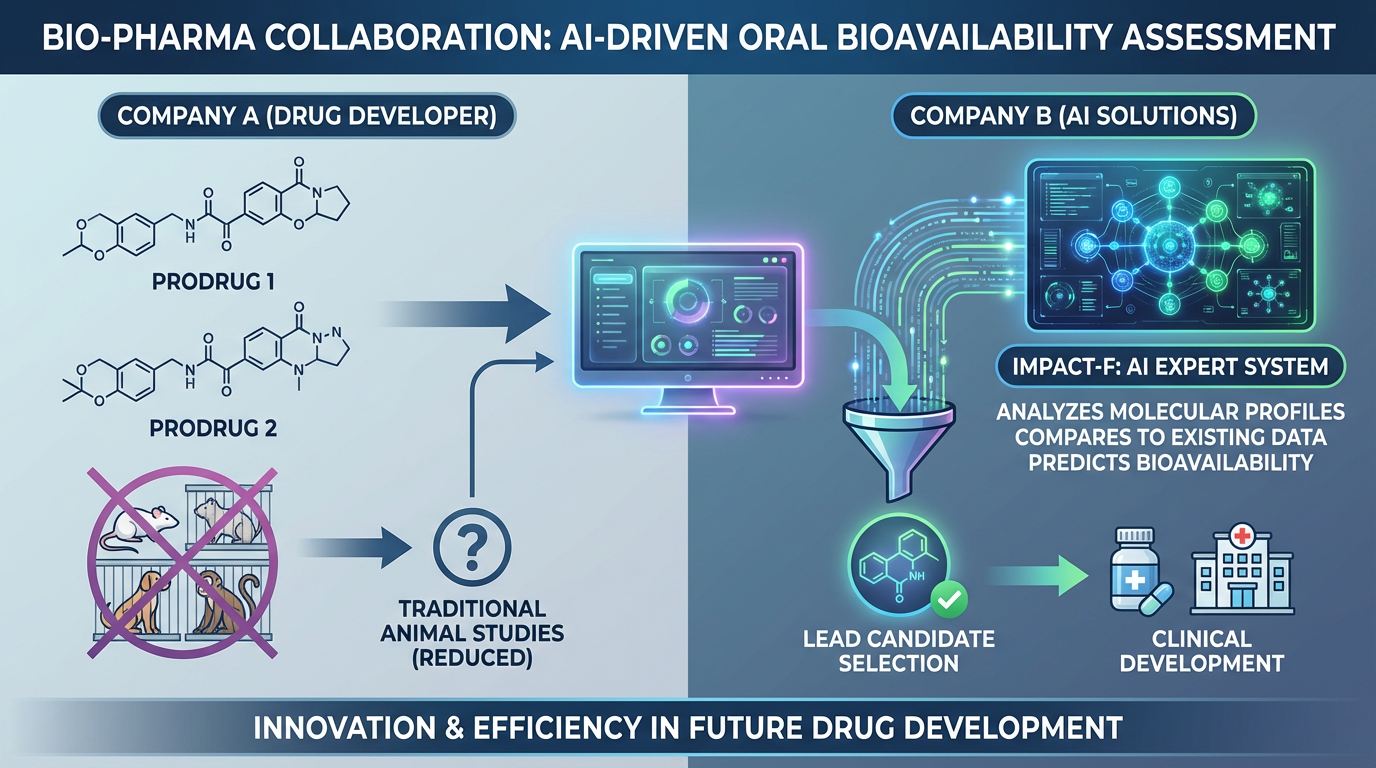 Avivia BV required an efficient solution to evaluate the oral bioavailability of two different prodrugs for the same active drug, without relying heavily on traditional animal studies in rats, dogs, and monkeys. The IMPACT-F system analyzed the molecular profiles of our prodrugs, comparing them to existing data on chemically similar prodrugs and drugs. This insightful analysis enabled us to make an informed selection of the lead candidate, which has now progressed to clinical development.