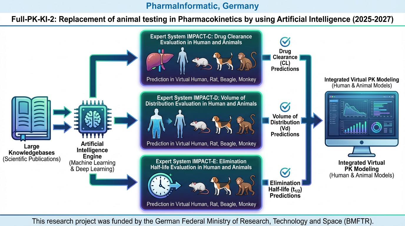 In the predecessor project, Full-PK-KI, expert systems were developed to accurately predict key pharmacokinetic parameters—distribution volume (VD),