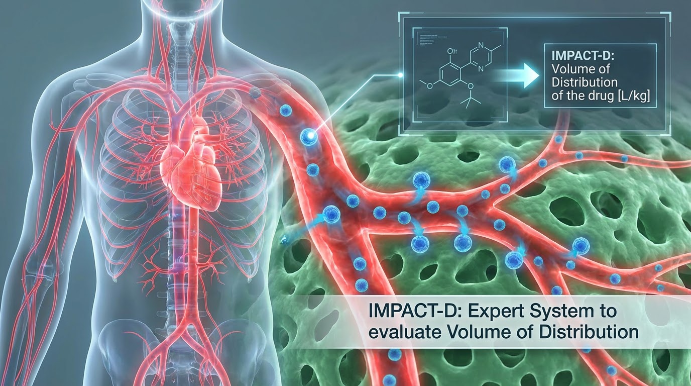 The expert system IMPACT-D predicts the Volume of Distribution (Vd) of small-molecule drug candidates in humans and animals, including monkeys, dogs, and rats. This crucial pharmacokinetic parameter describes how extensively a drug disperses throughout the body’s tissues relative to its concentration in the systemic circulation.