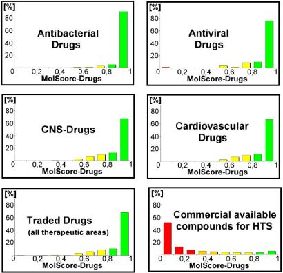 The examination of more than 500.000 commercial available compounds used for HTS showed that only a low amount of these compounds will satisfy the requirements of becoming a promising drug.