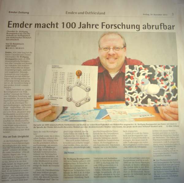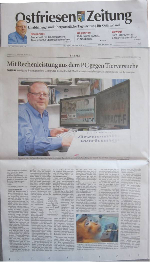 The German newspaper Emder Zeitung published a detailed report about PharmaInformatic and on the development of the knowledge base PACT-F: |